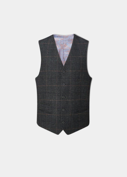 Surrey Chaleco de Tweed con Forro Country para Hombre en Cuadros Verdes - Corte Regular