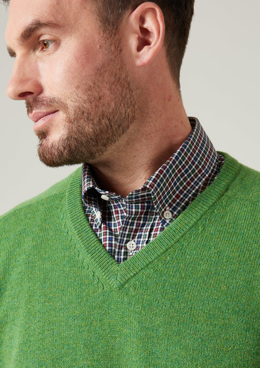 Lenzie Jersey de Lana de Cordero para Hombre en Verde Tartan - Corte Regular