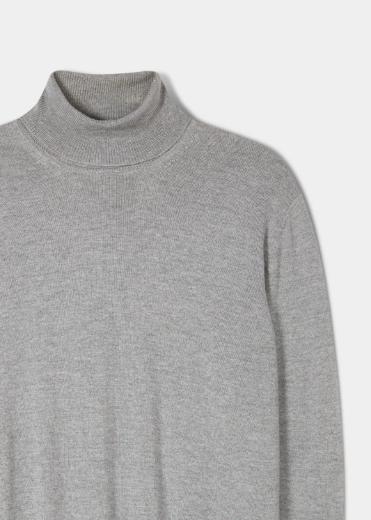 Linton Jersey de Cuello Alto de Lana Merino en Mezcla Gris Claro - Corte Regular