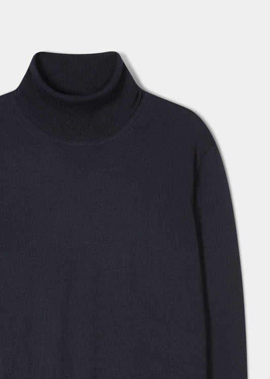 Linton Jersey de Cuello Alto de Lana Merino en Azul Marino Oscuro - Corte Regular