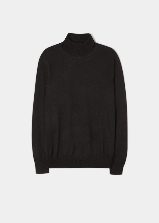 Linton Jersey de Cuello Alto de Lana Merino en Negro - Corte Regular